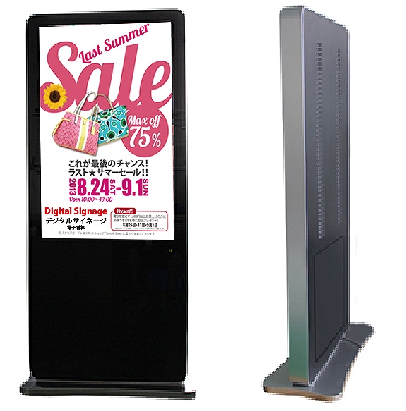 | 複数の写真や資料、動画(映像)を再生する電子看板です。 写真の製品は、55インチの大画面の製品です。 こちらの製品の特徴は、液晶メーカーによる直接生産の製品です。 【価格】 25インチ製 :35万円 【価格】 55インチ製 :42万円 |