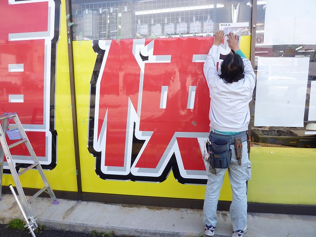 | ガラス面に大型のシートを貼る場合、このように分割して作成して現地で繋ぎ貼りを行います。 |